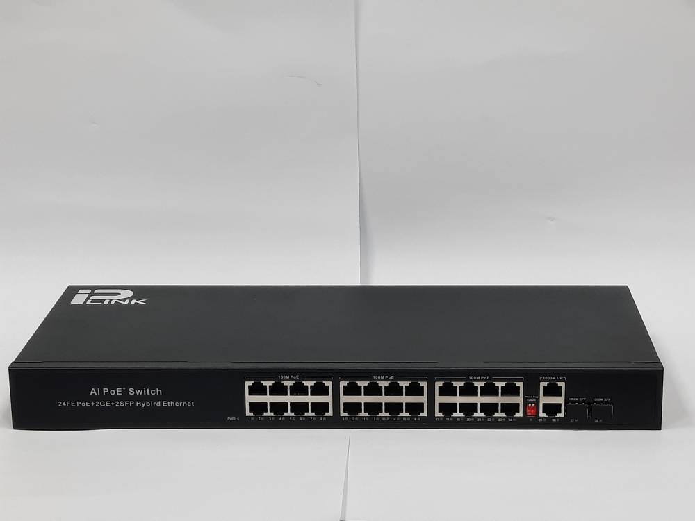 | 10/100M 24POE + 1000M 2 RJ45 + 1000M 2 SFP slot, Vlan support 100/250m Extend , 300 w , 2k , AI With DIP Switch ( Unmanaged) | YV-AI2026FEGE-2SF |
